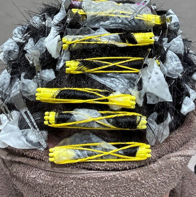 早速カットしてもらい、いよいよパーマをあてていく。